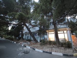 — Двор в хвойных деревьях и можжевельнике — воздух чистый, пахнет морем и Крымом. Окна открыты — шума нет.