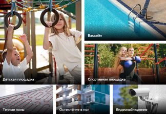Во дворе закрытой территории комплекса расположен бассейн, детская и спортивная площадки, многоуровневая парковка, кафе и магазины.