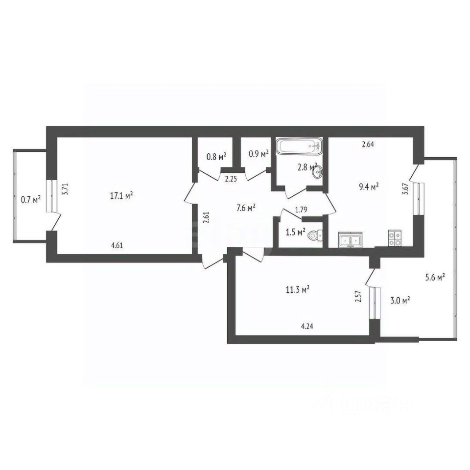 Квартира располагается на комфортном 2 этаже пятиэтажного блочного дома. Выполнен современный, качественный ремонт, комнаты (11,3 кв.м и 17,1 кв.м.) просторные, светлые, комфортная кухня (9,4 кв.м), санузел раздельный, кладовая, установлены пластиковые окна, есть балкон и лоджия.