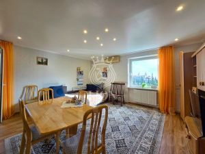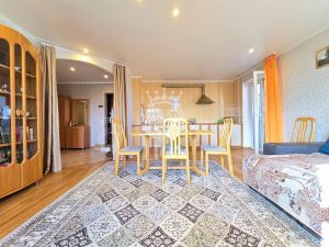 Светлая кухня, гостиная с обеденной зоной и выходом на лоджию — идеальное пространство для семейных вечеров