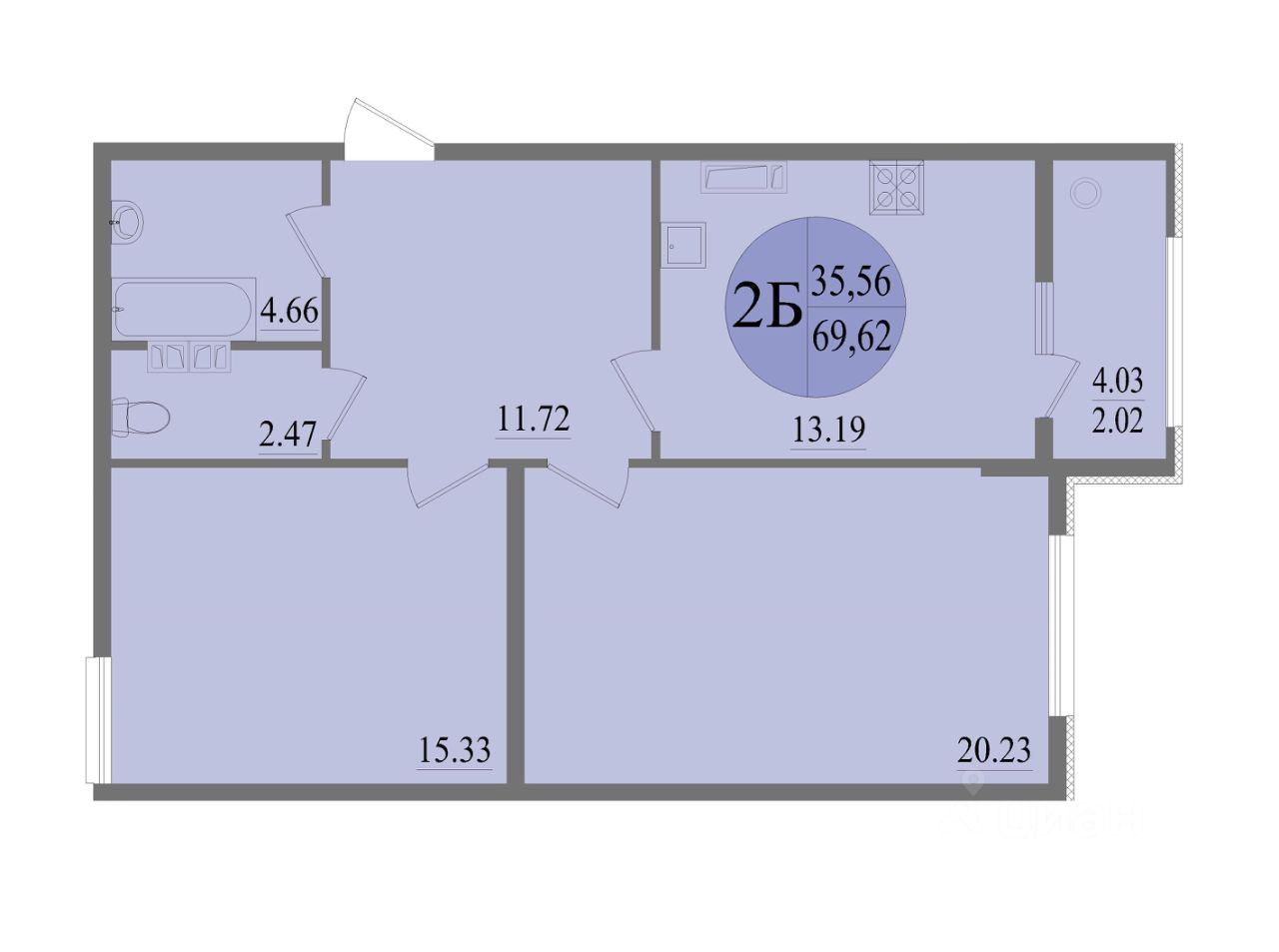 Общая площадь69,62 м²