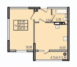 Общая площадь44,59 м²