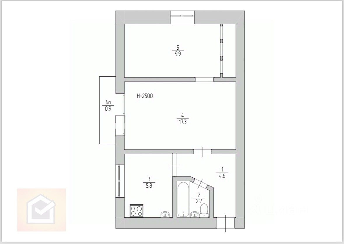 Квартира с общей площадью 42.3 кв.м имеет смежно-изолированную планировку, что обеспечивает максимальный комфорт и функциональность пространства. Высота потолков 2.6 м придает помещению просторность и свет. На третьем этаже дома расположен уютный балкон, где можно насладиться утренним кофе с видом на окружающий пейзаж.
