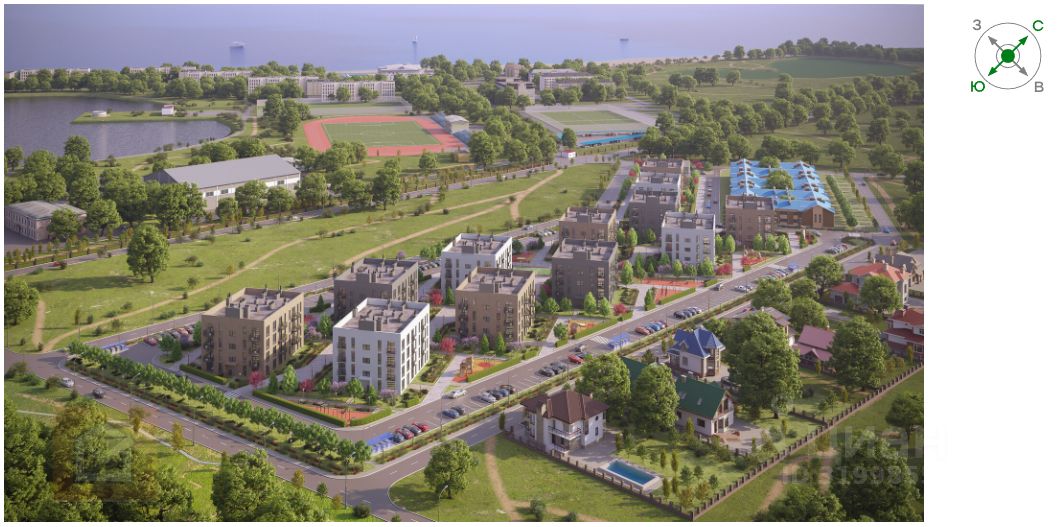 Это современный ЖК, который состоит из 12 домов по четыре этажа.