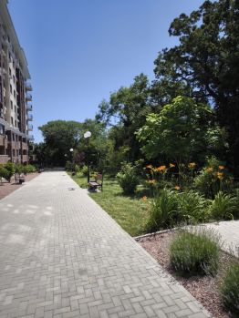 В квартире выполнен дизайнерский ремонт, что создает уют и комфорт. Просторная комната объединена с кухней, предлагая современное открытое пространство. Санузел совмещенный, оборудован всей необходимой сантехникой высокого качества. Из окон открывается вид на МОРЕ обеспечивая тишину и спокойствие. Есть балкон, где можно наслаждаться свежим воздухом и видом на окрестности.