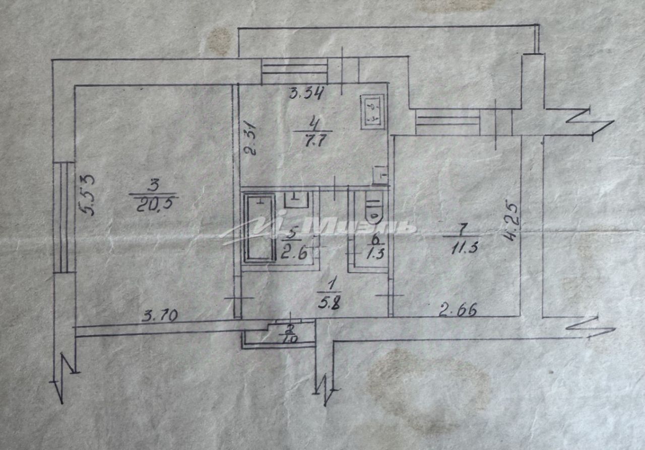 Общая площадь 50.2 кв.м. (без учета лоджии), жилая 31.8 кв.м., кухня 7.7 кв.м..