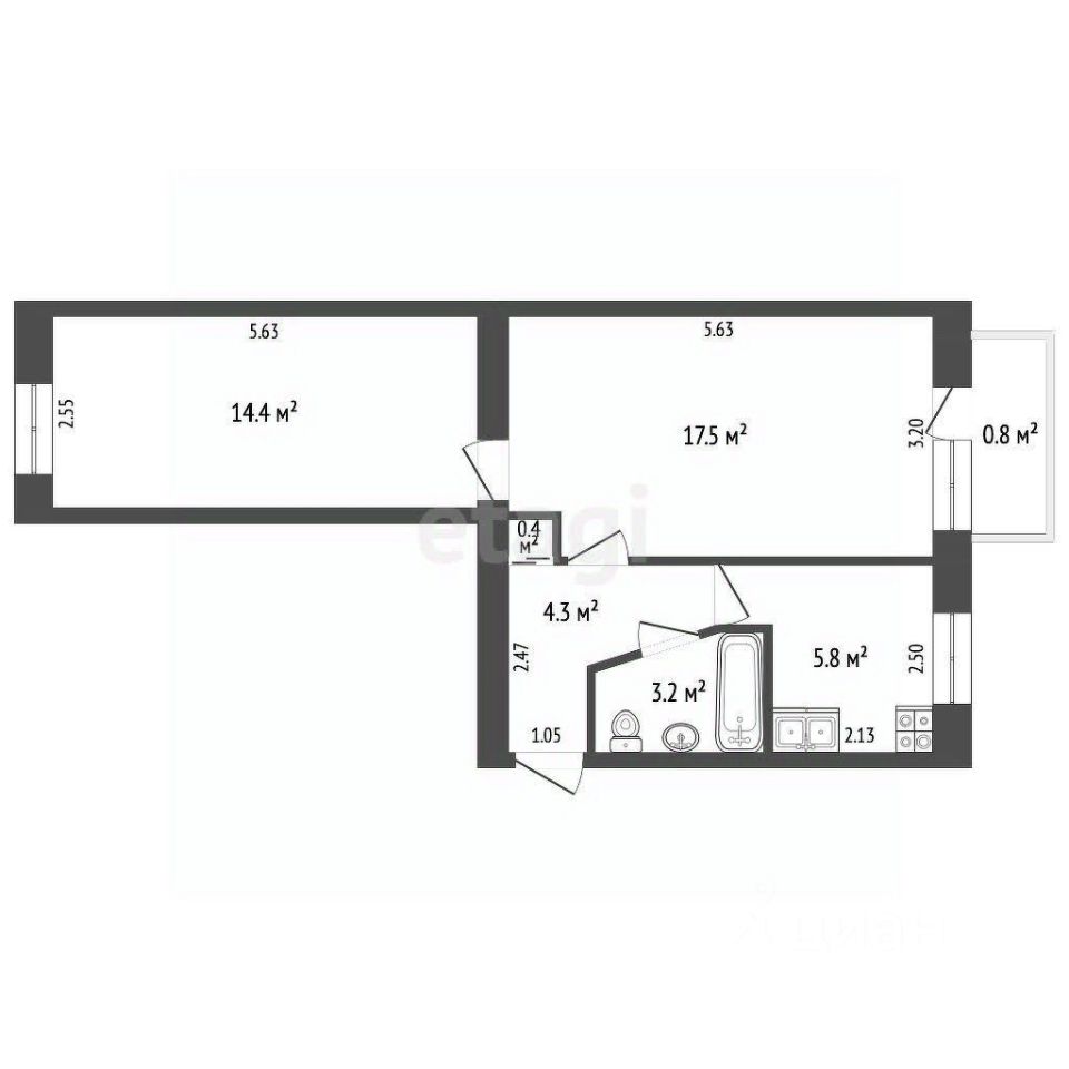 Прихожая 4,3м2, кухня 5,8 м2, совмещенный санузел. В квартиру можно заехать и жить.