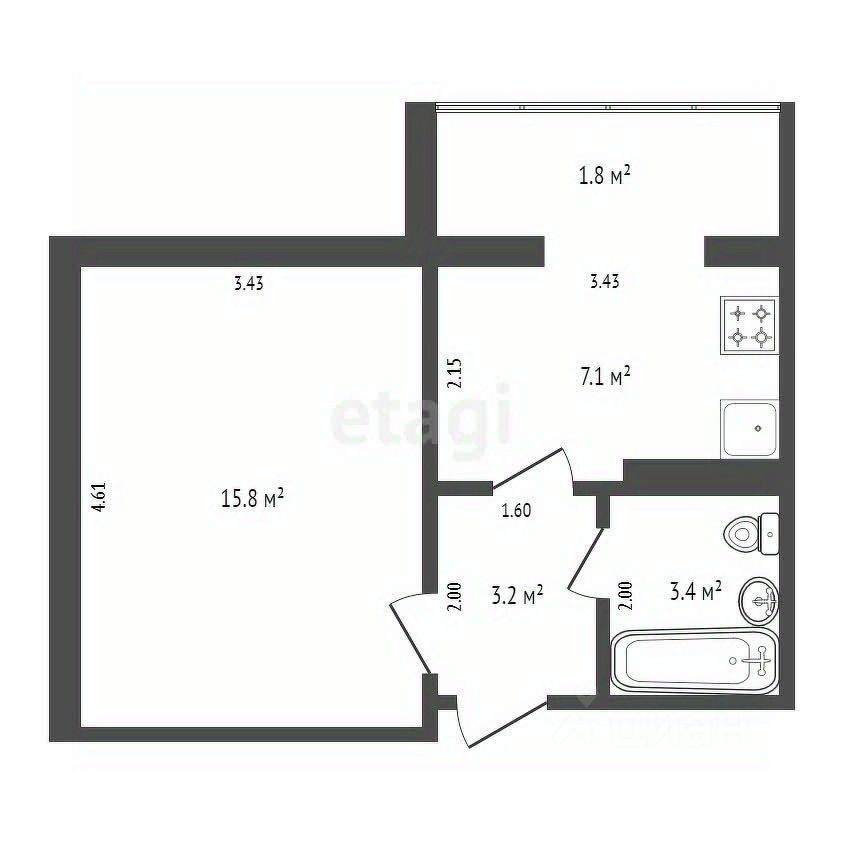 Особенностью этой квартиры является вынос кухни на балкон, что позволяет использовать кухонное пространство как дополнительную комнату.