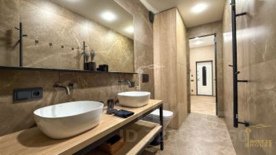 Кухня оснащена всей необходимой техникой: варочная панель, микроволновая печь, посудомоечная машина, холодильник. В санузле уставлен бойлер Ariston 80 литров на горячую воду и стиральная машинка.