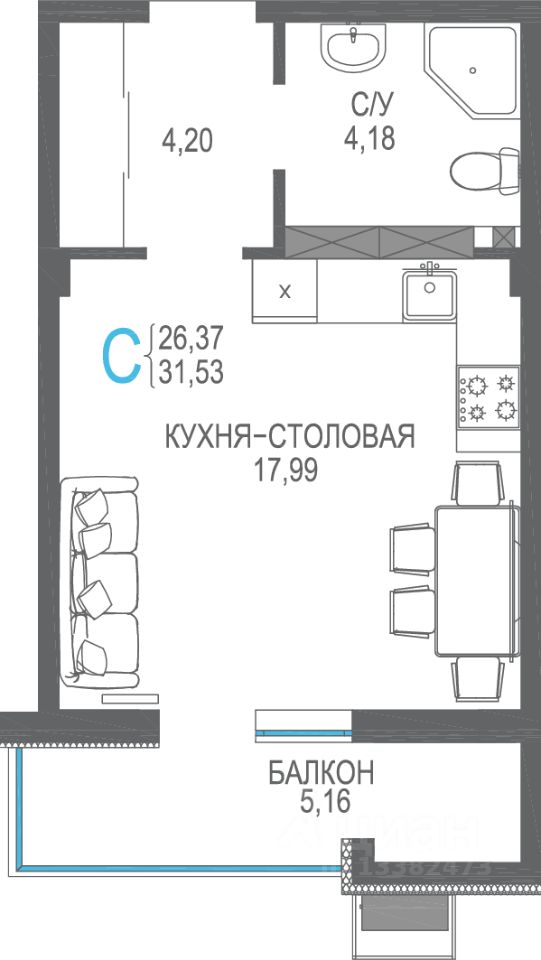 Продаётся студия в строящемся доме (Дом 3), срок сдачи: III-кв. 2026, общей площадью 30.66 кв.м., на 8 этаже. Жилой комплекс от застройщика "Интерстрой" в п.г.т. Гвардейское Симферопольского района на улице Курганная.