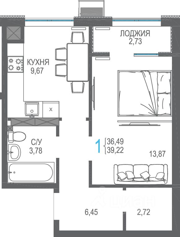 39,63 м²