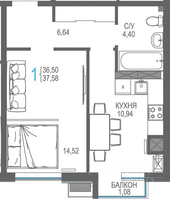 Продаётся 1-комнатная квартира в строящемся доме (Дом 3), срок сдачи: III-кв. 2026, общей площадью 37.12 кв.м., на 6 этаже. Жилой комплекс от застройщика "Интерстрой" в п.г.т. Гвардейское Симферопольского района на улице Курганная.
