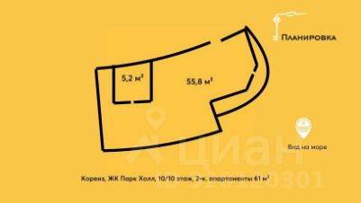 Продаются светлые и просторные 2-комнатные апартаменты площадью 61 м², включая балкон 5 м², на последнем этаже 10-этажного апарт-комплекса Park Hall — всего в 50 метрах от берега Черного моря.