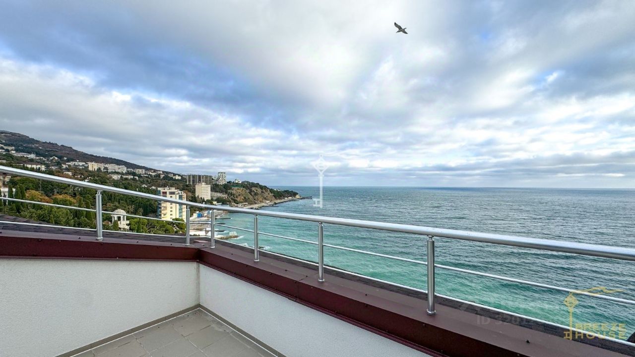 Из панорамных окон открывается впечатляющий вид на горы и море. Высокие потолки - 4,5 метра, создают ощущение простора и позволяют реализовать нестандартные дизайнерские решения.