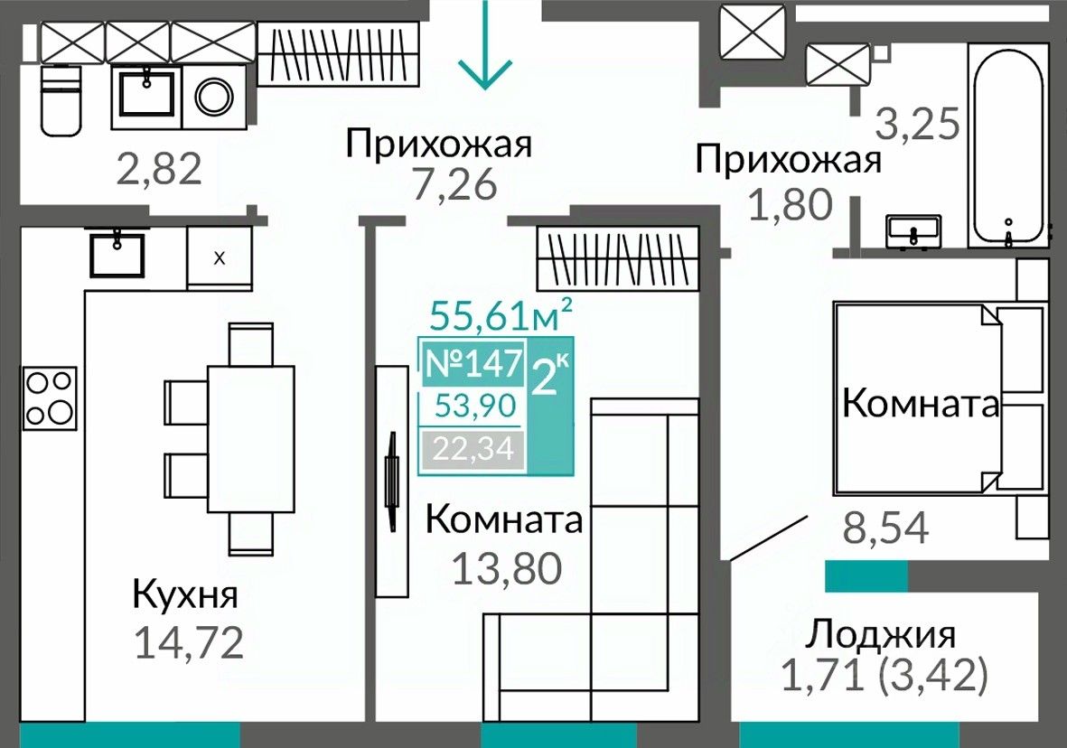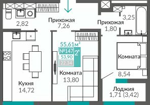 Продаётся 2-комнатная квартира в сданном доме (пр. Александра Суворова, 105 (этап 51)), срок сдачи: II-кв. 2024, общей площадью 53.9 кв.м., на 9 этаже. Новый жилой комплекс "Тюльпаны" от застройщика "Монолит" расположен по адресу Республика Крым, Симферополь, Объездная дорога.