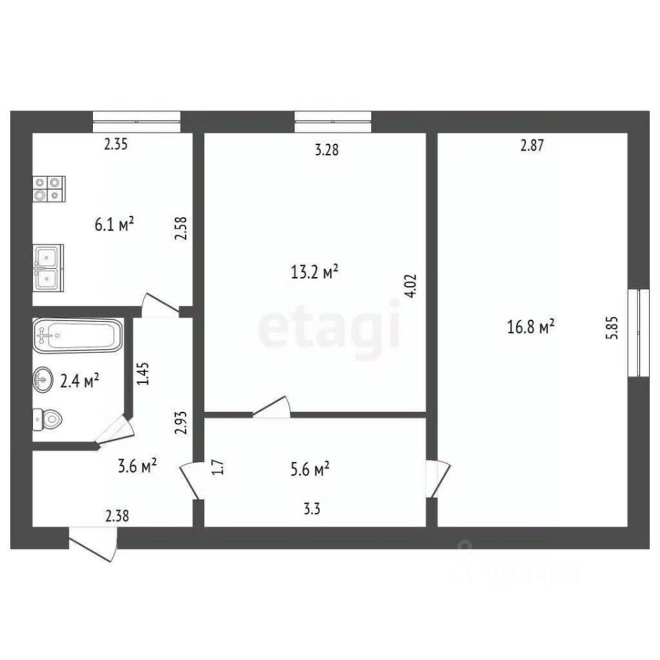 Общая площадь - 47,7 м.кв. Находится на первом этаже двухэтажного дома. Комнаты 13,2 и 16,8 м.кв. Кухня 6,1 м.кв, установлена газовая колонка на горячую воду, также стоит система очистки воды Osmos. Санузел совмещен. Отопление центральное. Установлен кондиционер. Окна пластиковые.