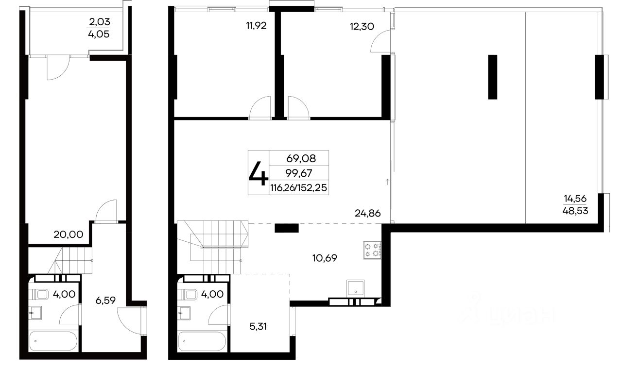 Продаётся 4-комнатная квартира в строящемся доме (БС-3), срок сдачи: III-кв. 2027, общей площадью 152.25 кв.м., на 15 этаже. Наш комплекс - это рай для детей. Мы предусмотрели активности для детей разных возрастов. Курорт "Лучистое" - это место, где максимально комфортно и не принуждённо будет развиваться творческая личность Вашего малыша!