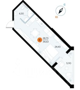 • *Планировка*: Студия с кухонной зоной, санузлом, балконом