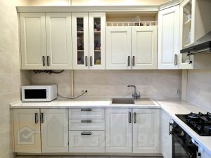 Просторная кухня с мебелью из натурального дерева и техникой (кондиционер, система очистки воды).