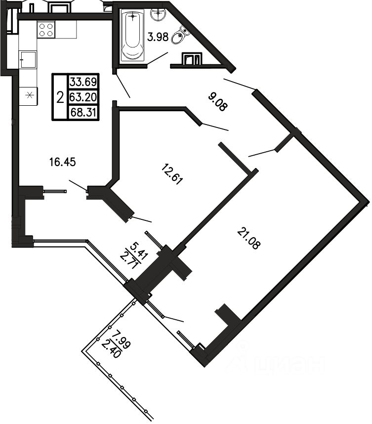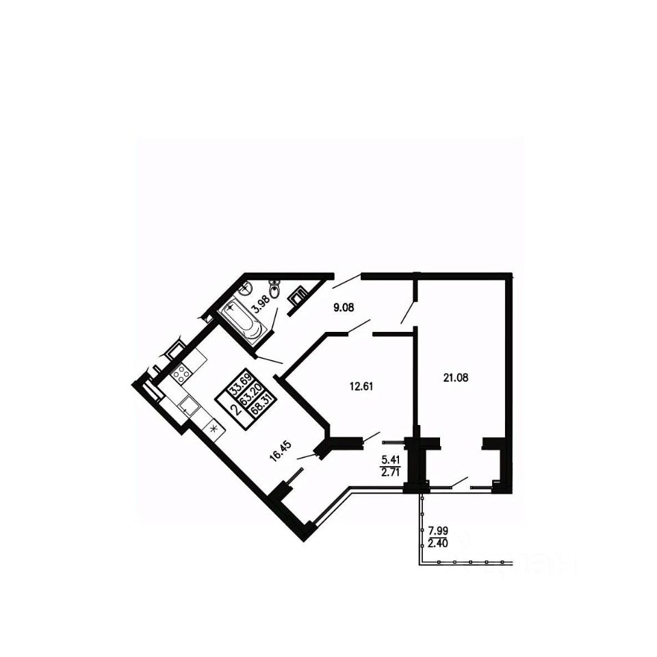 Общая площадь68,31 м²