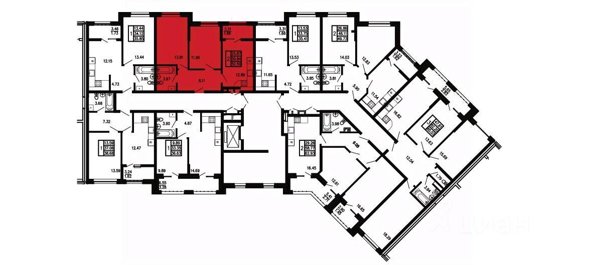Общая площадь52,5 м²