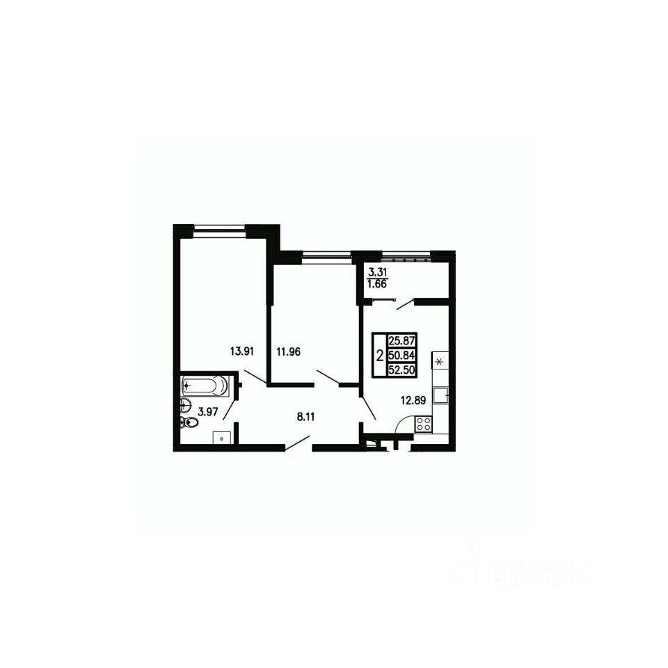 Общая площадь52,5 м²