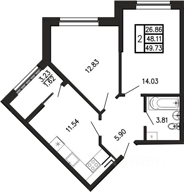 Общая площадь49,73 м²