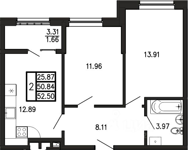 Общая площадь52,5 м²