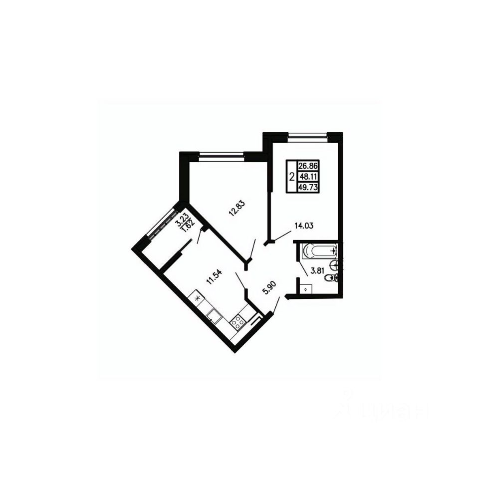 Общая площадь49,73 м²