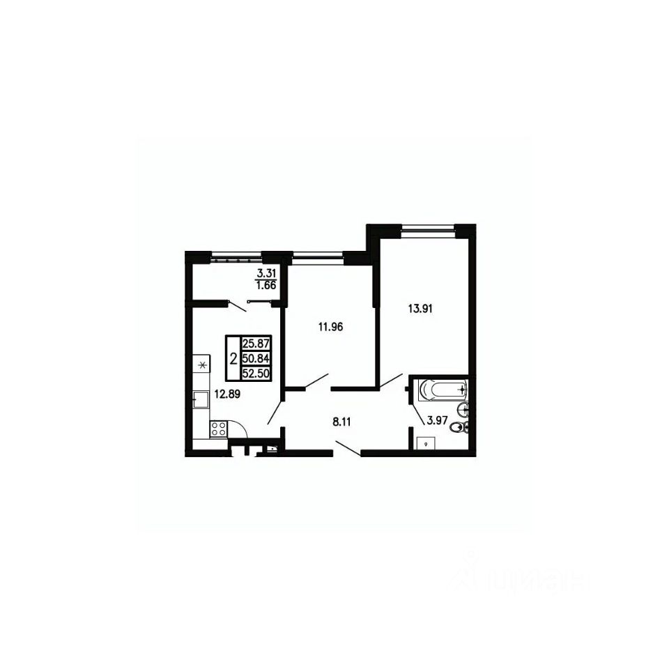 Общая площадь52,5 м²