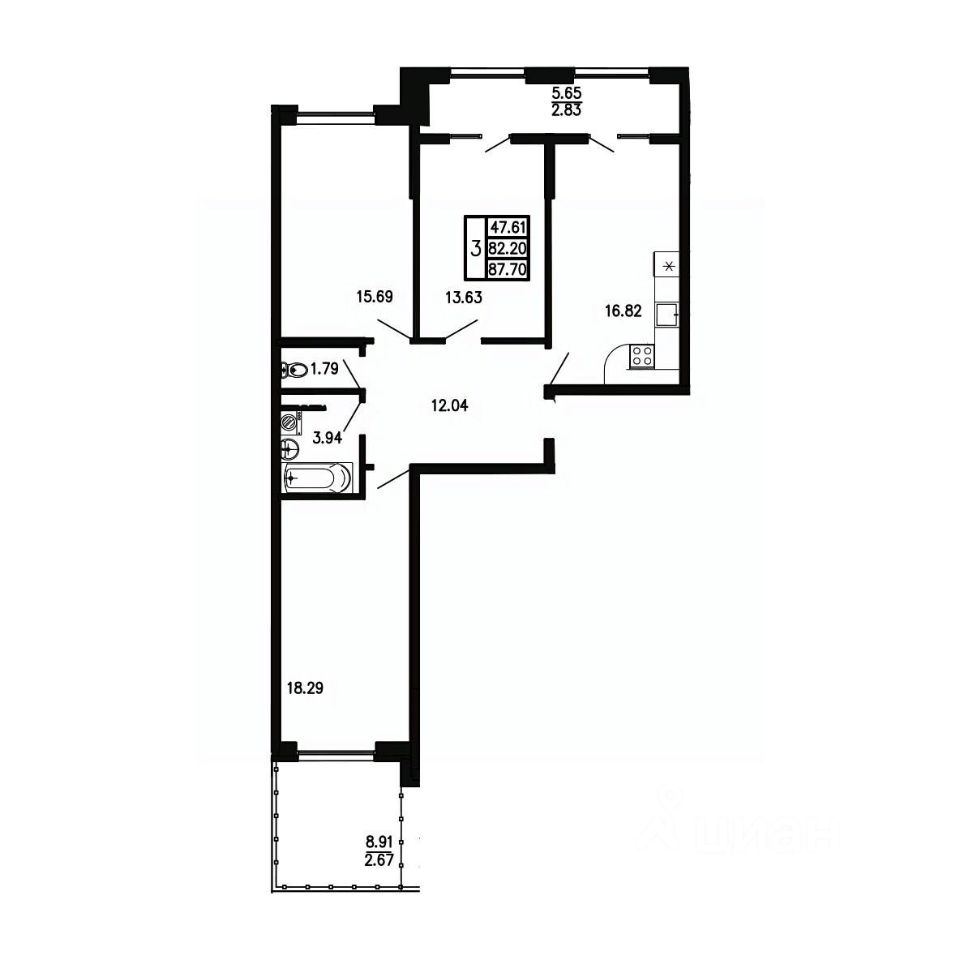 Площадь кухни16,8 м²