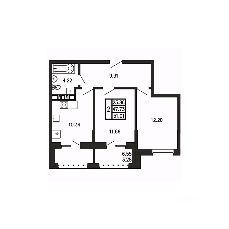 Общая площадь51,01 м²