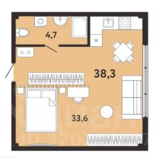 Апартаменты выполнены в стильном и современном дизайне. Просторная студия позволяет эффективно использовать пространство, создавая атмосферу уюта и комфорта. Ванная комната совмещена с санузлом и оформлена в современном стиле с использованием качественных материалов и сантехники.