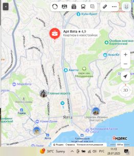 Апартамент в самом сердце Ялты на улице Киевская, 44. Уютная студия с дизайнерским ремонтом на 6 этаже современного 8-этажного дома, построенного в 2023 году. Общая площадь апартаментов составляет 38.3 квадратных метра, жилая площадь — 33.6 квадратных метра.