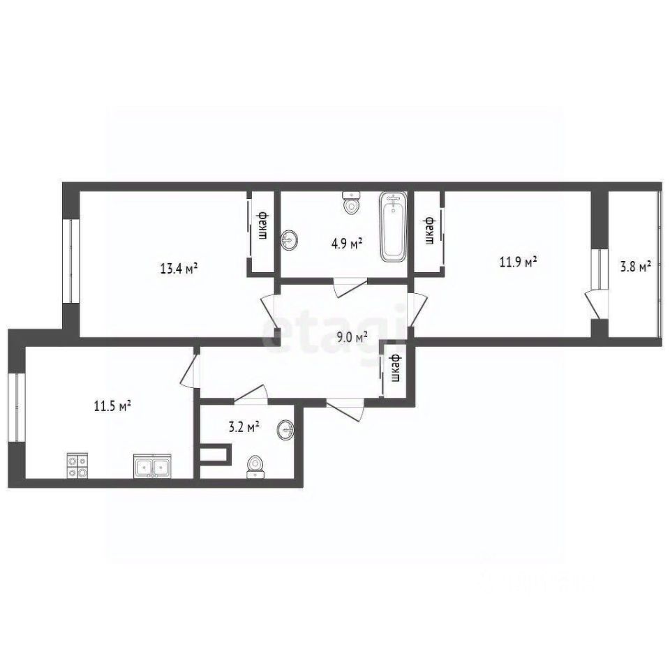 Площадь: 55,8 м²