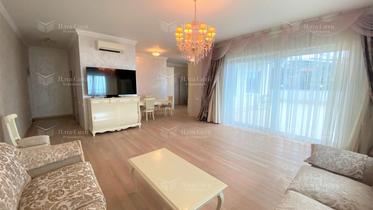 ID:21369. Предлагаем вашему вниманию роскошный пентхаус расположенный в зеленом уголке Гаспры в жилом комплексе "Александрия". Жизнь в пентхаусе таит особое очарование. Вид из окна окрыляет. Пентхаус позволяет "распахнуть окна" для доступа света и контакта с внешней средой. Устав от стандартного жилья, жители воспринимают открытую планировку и просторную террасу, как глоток свободы. Словно ты наедине с природой. Фактическая площадь пентхауса с террасой и балконом - 281,4 кв.м, три отдельные комнаты: зал - 37 кв.м, спальня- 24 кв.м, кабинет- 13 кв.м. Планировка пентхауса подразумевает: прихожую, гостевой санузел, просторный зал с выходом на открытый балкон и открытую террасу по всему периметру квартиры, с одной стороны отрывается живописный вид на гору Ай-Петре, с другой на море, кухню, кабинет (с легкостью трансформируется в спальню), хозяйскую спальню с ванной на золотых ножках с выходом на открытую террасу. Высокие потолки, панорамные окна в пол, позволяют забыть о границе между внутренним и внешним миром. В Пентхаусе выполнен ремонт в классическом стиле на самом высшем уровне с использованием натуральных материалов (мрамор, травертин, паркет), итальянской мебели (Cavio,Castagna) и люстрами, техники (Miele, Liebherr, Mitsubish), сантехники (Villeroy@ Boch, Hippo). Благодаря сдержанной цветовой гамме и оригинальным деталям в пентхаусе царят уют и покой. Это место создано для отдыха и наслаждения жизнью. Приятным бонусом к покупке будет парковочное место.