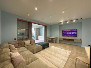 Качественная отделка: Современная мебель, встроенная техника (кофемашина, посудомоечная машина, холодильник), система климат-контроля, теплые полы в санузлах.