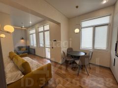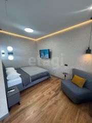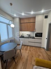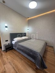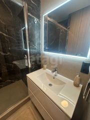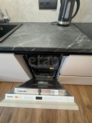 Встроенная бытовая техника, включая посудомоечную машину, качественная мебель, сантехника и теплые полы создают комфортные условия для проживания. Дополнительные элементы интерьера, такие как теневой потолок с подсветкой, подчеркивают внимание к деталям.