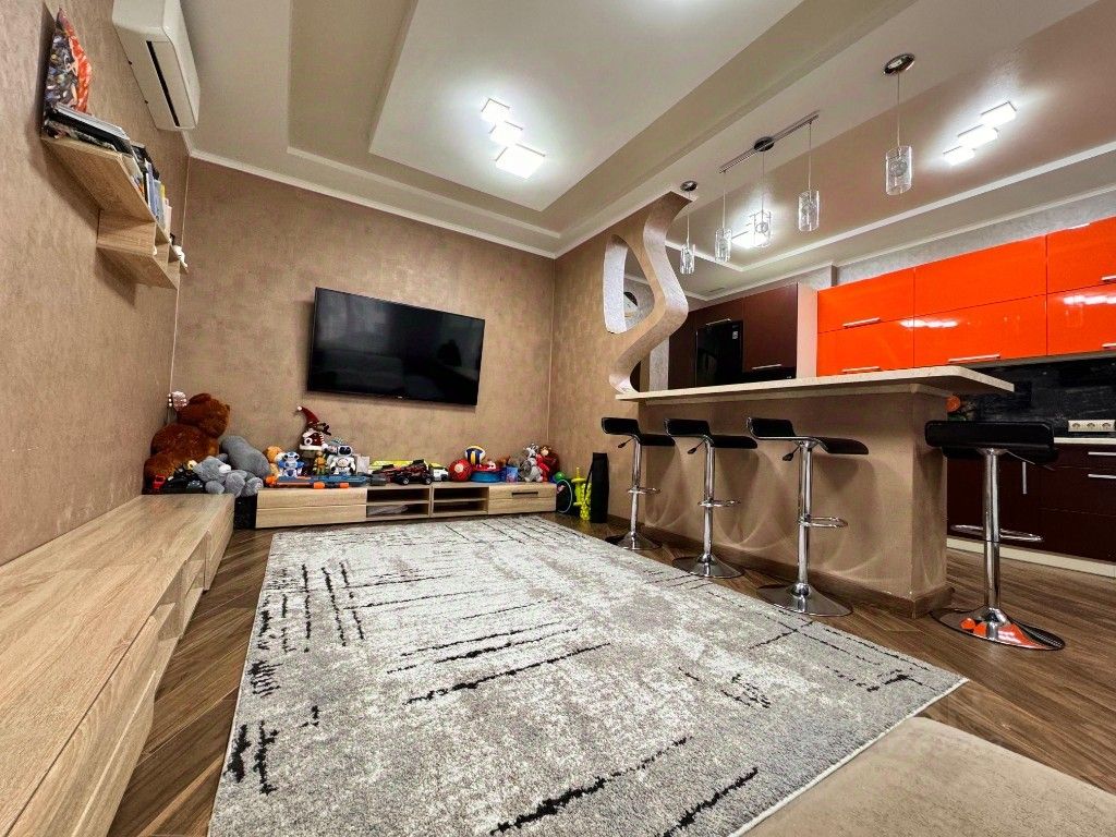 Выполнен капитальный качественный ремонт из дорогостоящих материалов, включая теплые полы, венецианскую штукатурку на стенах и систему кондиционирования.