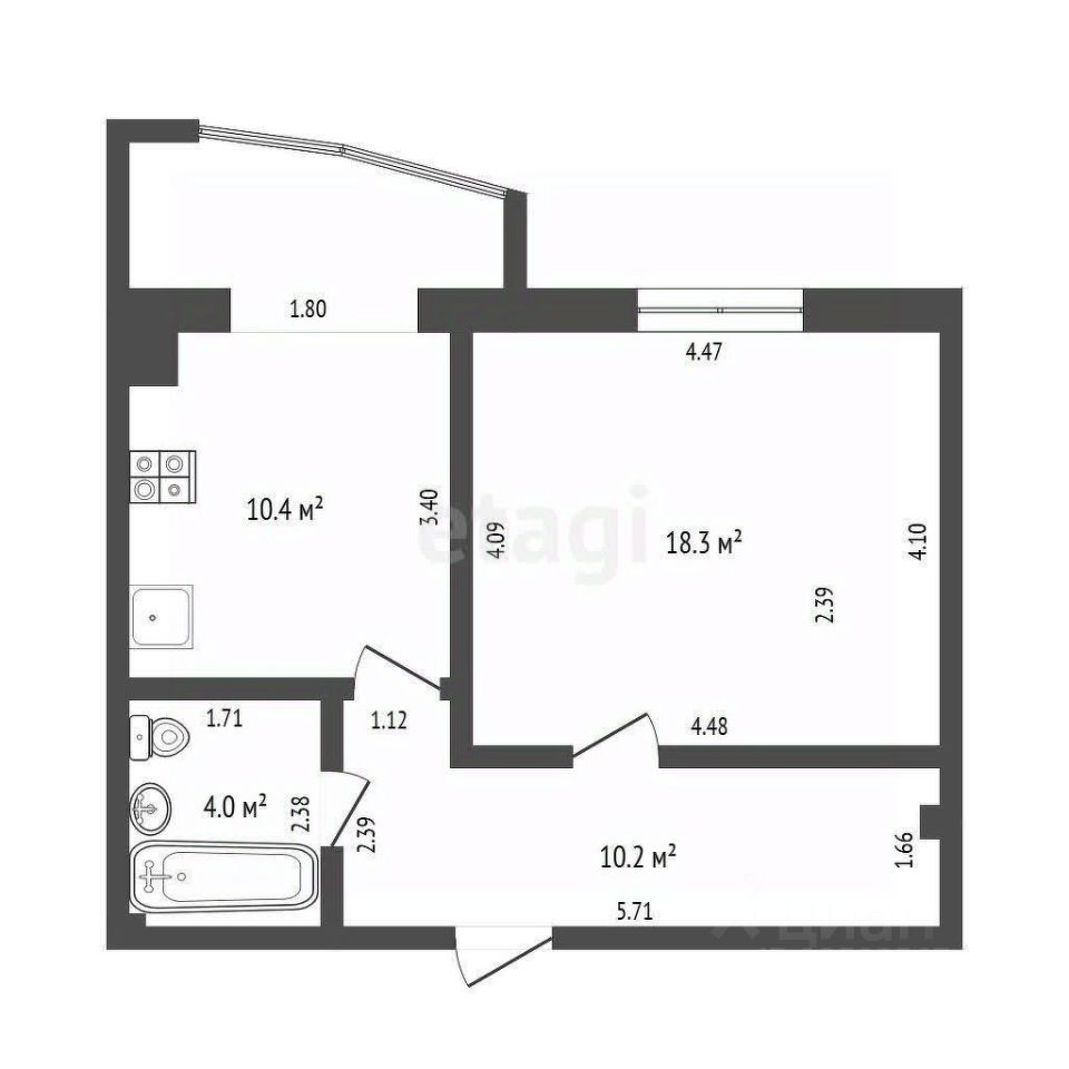 - Находится на 1 этаже 10-этажного дома, общая площадь 42.9кв.м.