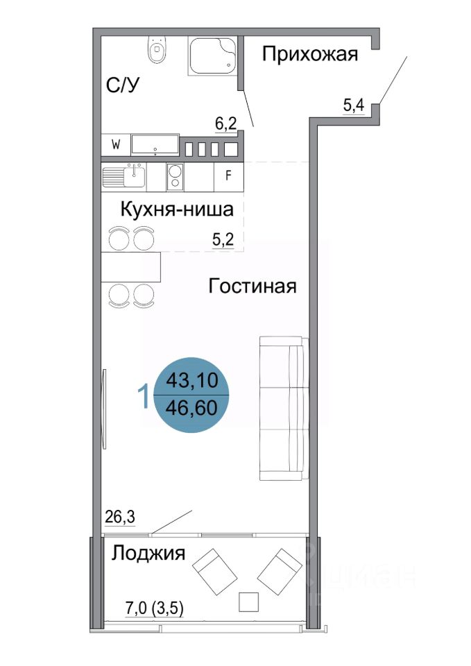 46,6 м²