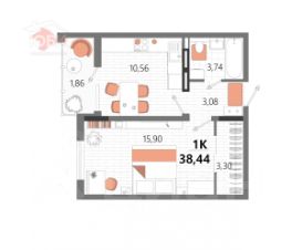 Планировка евродвушка! Просторная кухня-гостиная и спальня.
