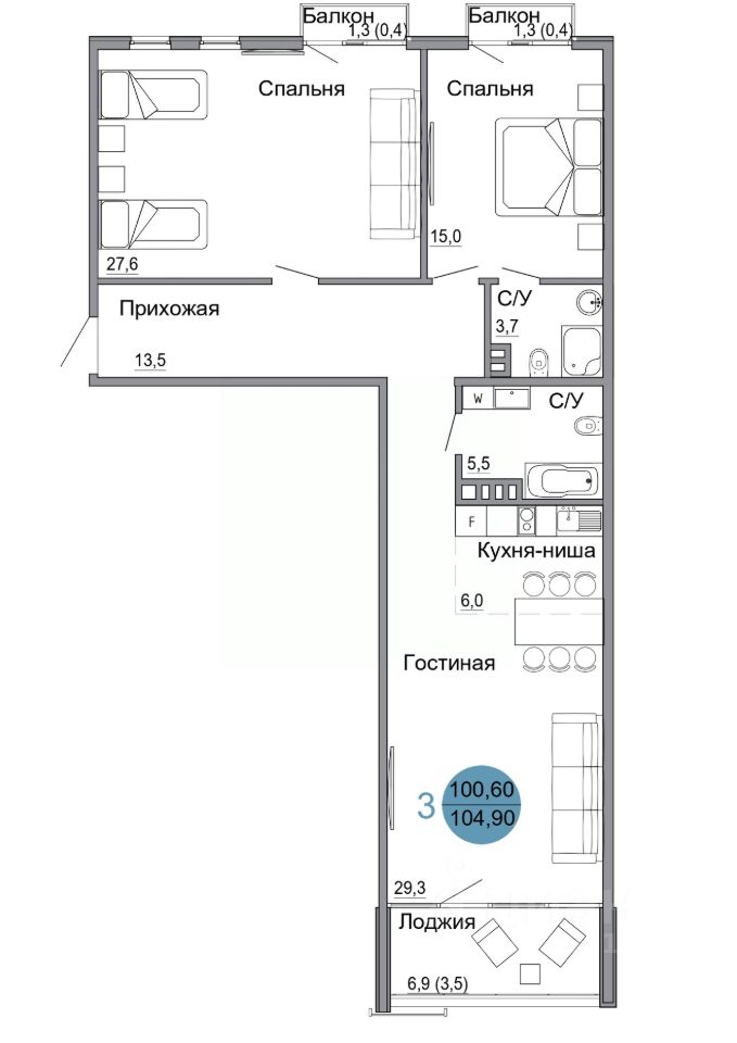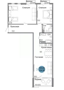 104,9 м²