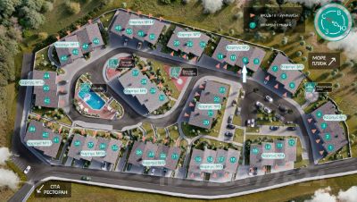 Инфраструктура: собственный трансфер к морю (6 минут), рестораны, SPA, бассейны, фитнес, консьерж-сервис 24/7, мероприятия для резидентов.