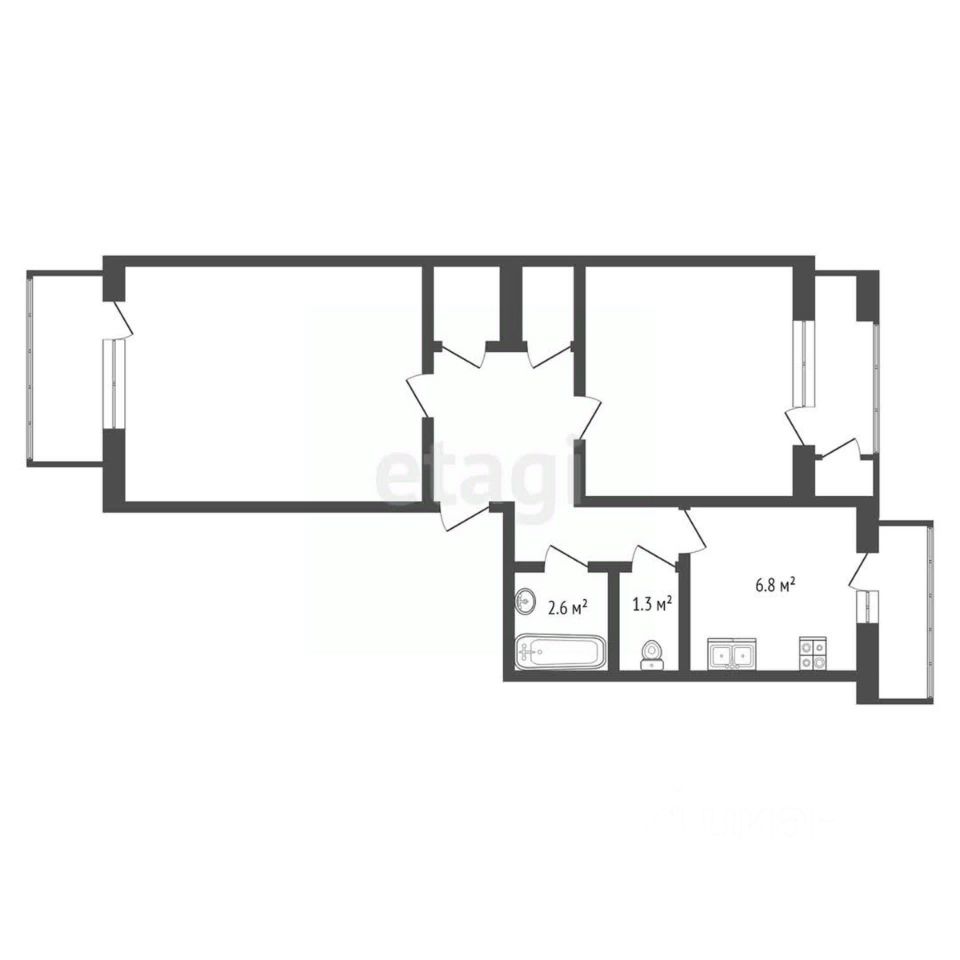 Две отдельные комнаты с прихожей. Просторная кухня. Раздельный санузел.
