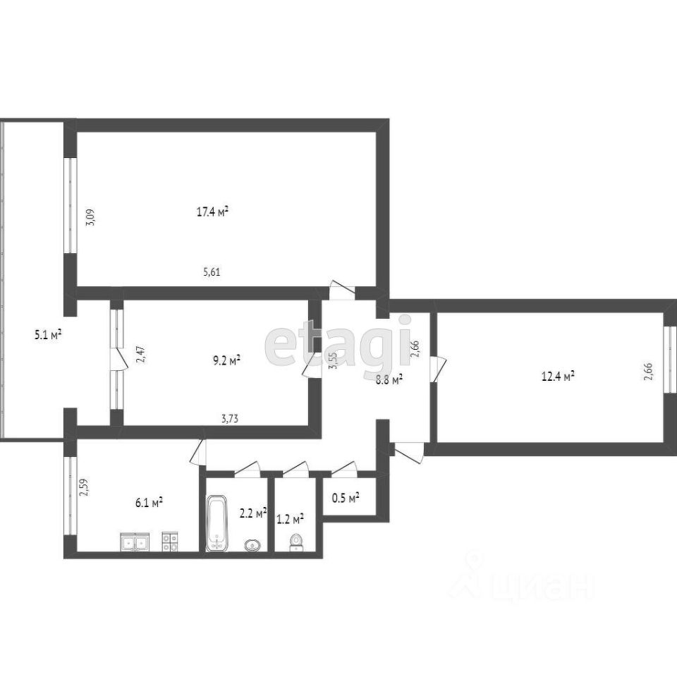 Объект отличается удобной планировкой: все комнаты изолированы, кухня площадью 6,1 м² функциональна и позволяет комфортно разместить обеденную зону. Дополнительное пространство для хранения или отдыха обеспечивают застекленные лоджия и балкон. Санузел раздельный, коммуникации центральные. Квартира находится в жилом состоянии, что позволяет сразу заселиться, но при желании новый собственник сможет выполнить ремонт по своему вкусу.