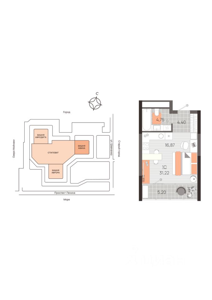 Продается студия, 31,22 м²