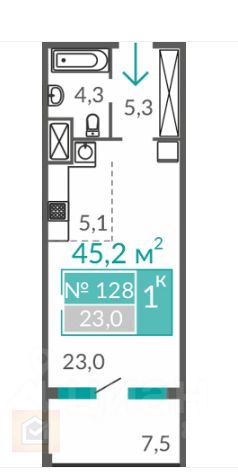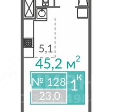 Общая площадь составляет 45.2 м², жилая — 23 м².