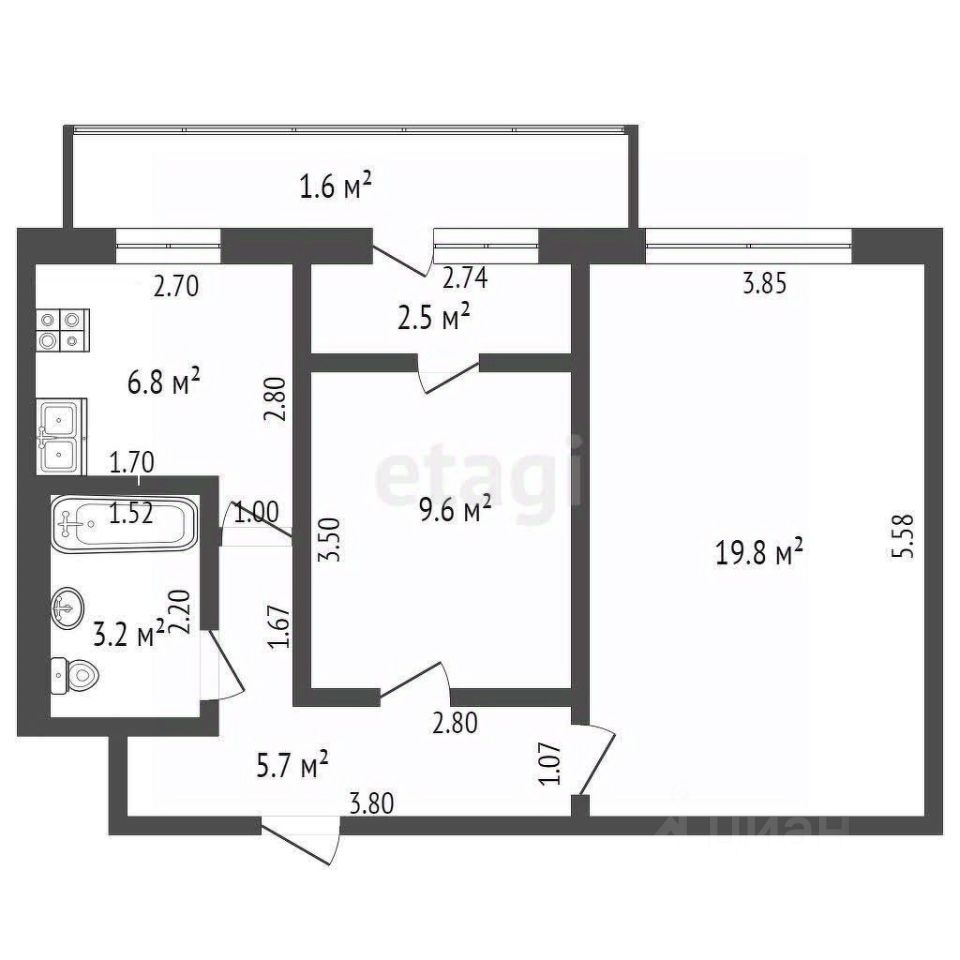 Эта уютная квартира станет идеальным местом для жизни и отдыха. Просторные комнаты площадью 9,6 и 19,8 кв.м. обеспечат Вам комфорт и свободу, а кухня площадью 6,8 кв.м. станет настоящим сердцем Вашего дома, где можно готовить вкусные блюда для семьи и друзей. Большая лоджия добавляет дополнительное пространство, которое можно использовать по своему усмотрению.