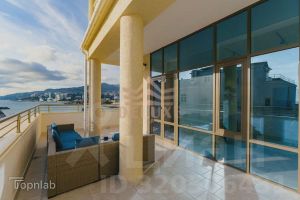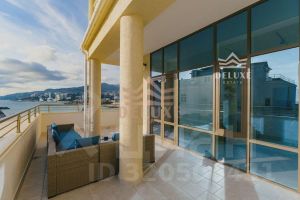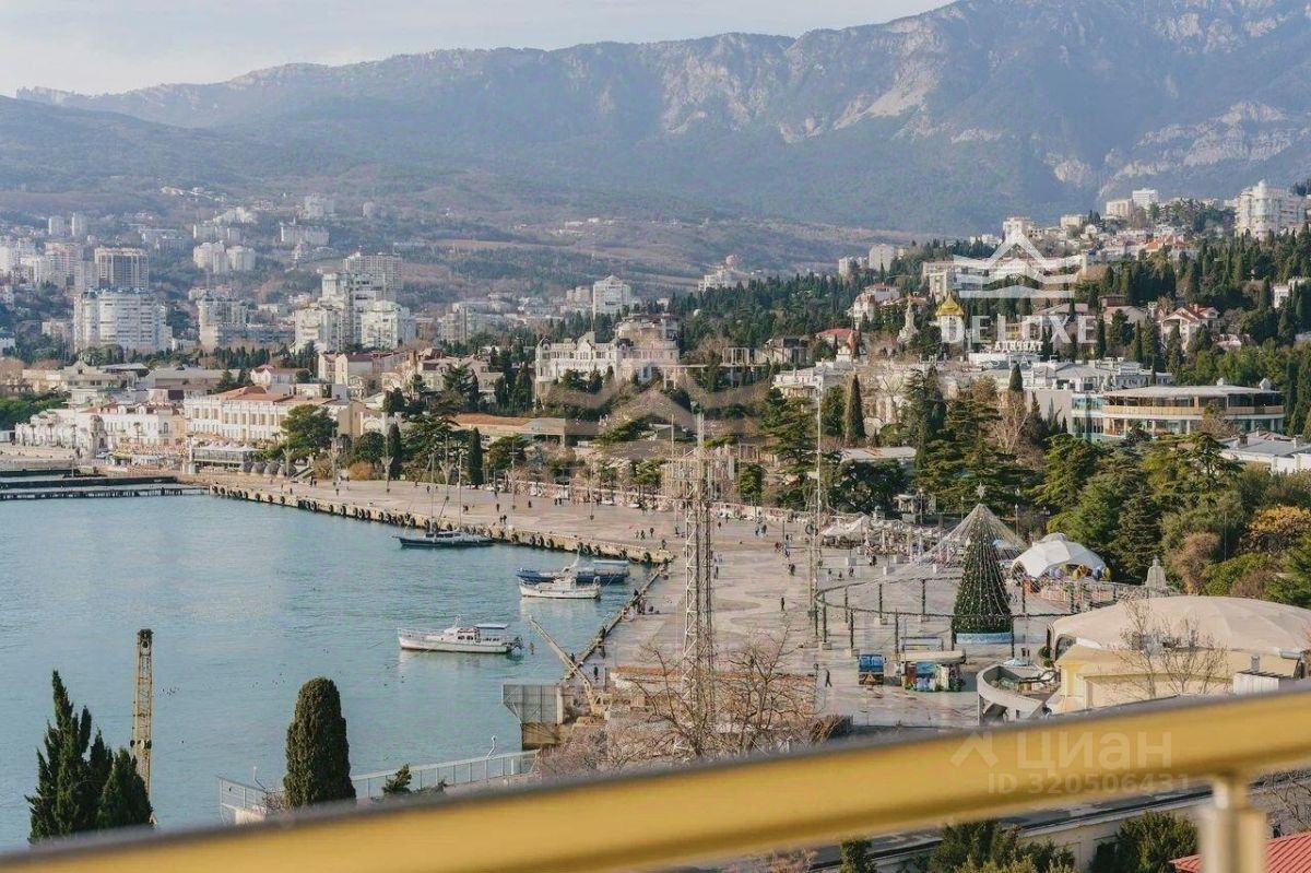 Просторная терраса с панорамным видом на море, горы, набережную Ялты и знаменитый отель "Интурист". Эти виды создают идеальную атмосферу для жизни и отдыха.